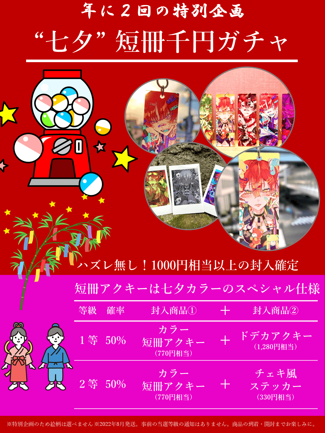 1等:50%「カラー短冊アクキー」+「ドデカアクキー」